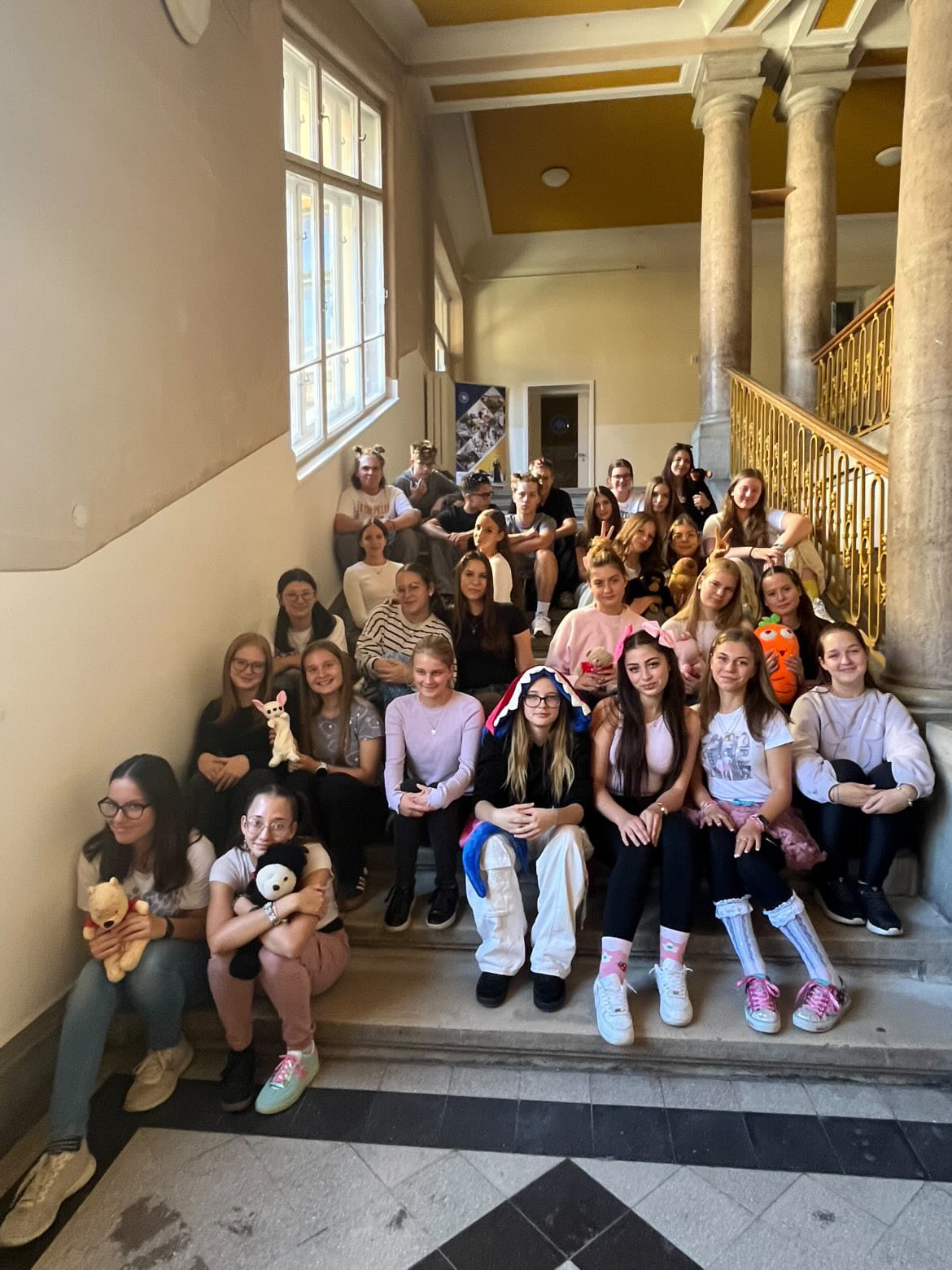 Iskolánk diákjai a „Vissza a gyerekkorba” programmal emlékeztek meg erről a jeles napról. Felemás zokni, vicces hajviselet, egy-egy szeretett plüss, a régi iskolatáska vagy a színes pólók elevenítették fel a kisiskolás éveket. „A lányok hajában többször láthattunk masnit, színes csatokat, ha jobban odafigyeltünk még tütü szoknyát is. Nagyon élveztük, főleg mi kilencedikesek akik éppen most csöppentünk bele a középiskolás évekbe. Köszönjük a programot a DÖK-nek, reméljük ebből egy jókedvű iskolakezdő hagyomány lesz.” (Jóni Vivien, 9.a)
